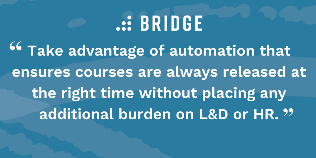 We’ve helped manufacturing organizations across the globe attract and retain skilled workers with learning and development that manufacturing talent loves. We know how hard it can be to nurture and build a talent pipeline amid the current skills crisis. But the good news is that a solid strategy and the right LMS can set you on the right path—we’ve laid it all out for you below. Here are five practical ways Bridge helps you attract and retain skilled workers.