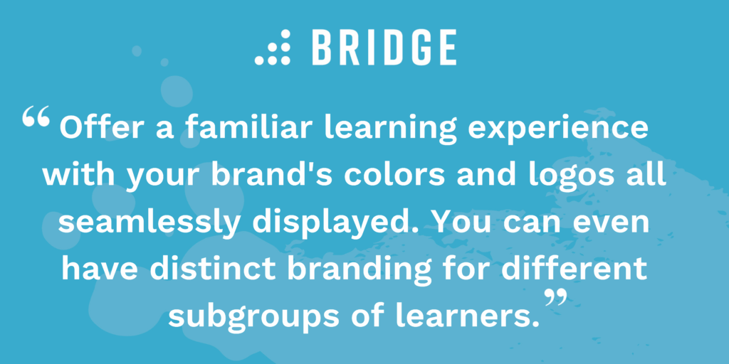 Manufacturing training made easy with Bridge: Taking control of your brand couldn't be simpler. Offer a familiar learning experience with your brand's colors and logos all present and correct. You can even have distinct branding for different subgroups of learners, so new starters will feel at home from day one, no matter their team or department.