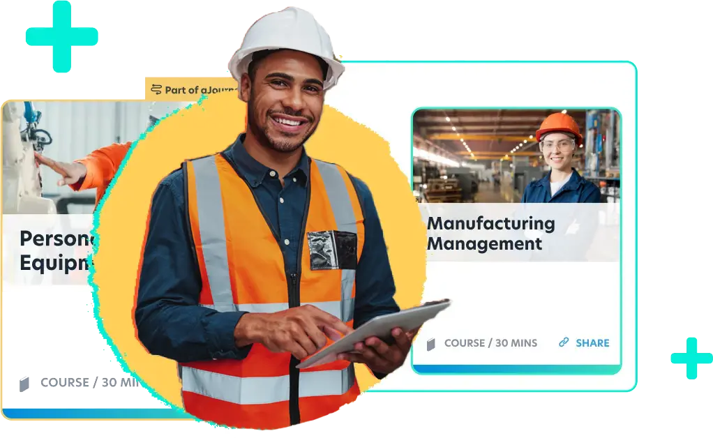 Line workers finish micro-lessons between shifts, on any device.