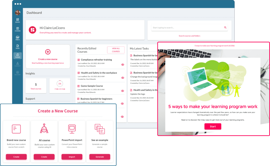 If you have content spread across slide decks, import your PowerPoints or Google Slides with a few clicks. It’s the ultimate time-saver for busy teams who need to create high-quality training.