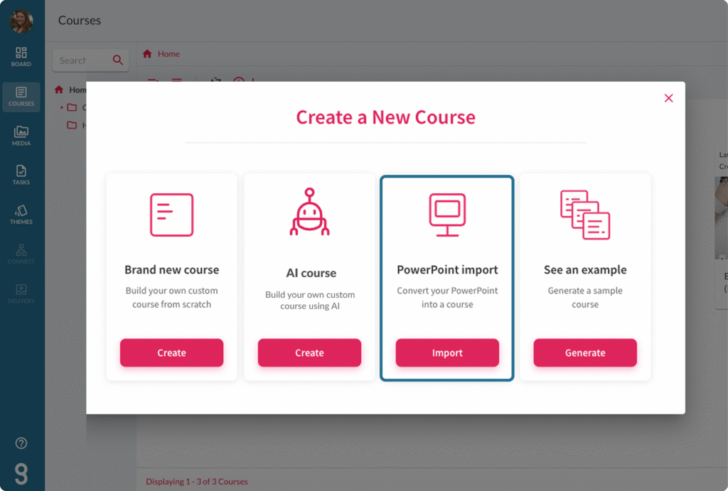 If you have content spread across slide decks, import your PowerPoints or Google Slides with a few clicks. It’s the ultimate time-saver for busy teams who need to create high-quality training.
