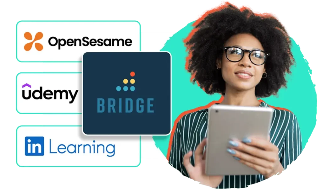 Bridge LMS integrates with your favorite third‑party content providers, so you don’t have to give up the resources you already rely on. We support integrations with LinkedIn Learning, OpenSesame and Udemy, reach out today to learn more.